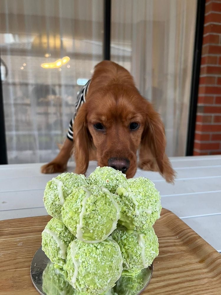 The pawfect cake for a ball lover! Celebrate your barkday, gotcha day or simply a sweet treat after you know (getting your balls cut...) with this BALL-TASTIC cake!